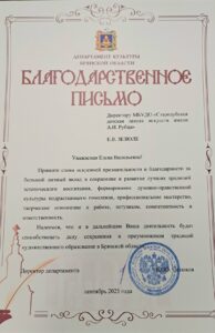 Приятным моментом стало вручение директору нашей Стародубской ДШИ им.А.И.Рубца Зезюле Е.В. Благодарственного письма Департамента культуры Брянской области.
