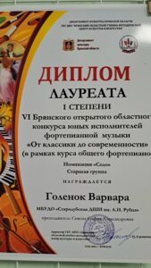 Поздравляем победителей V Брянского открытого областного конкурса юных исполнителей фортепианной музыки «От классики до современности» (в рамках курса «общее фортепиано») :