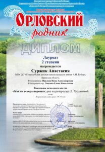 Поздравляем Суржик Анастасию с очередной победой во Всероссийском конкурсе-фестивале народного вокального и инструментального исполнительства «Орловский родник».